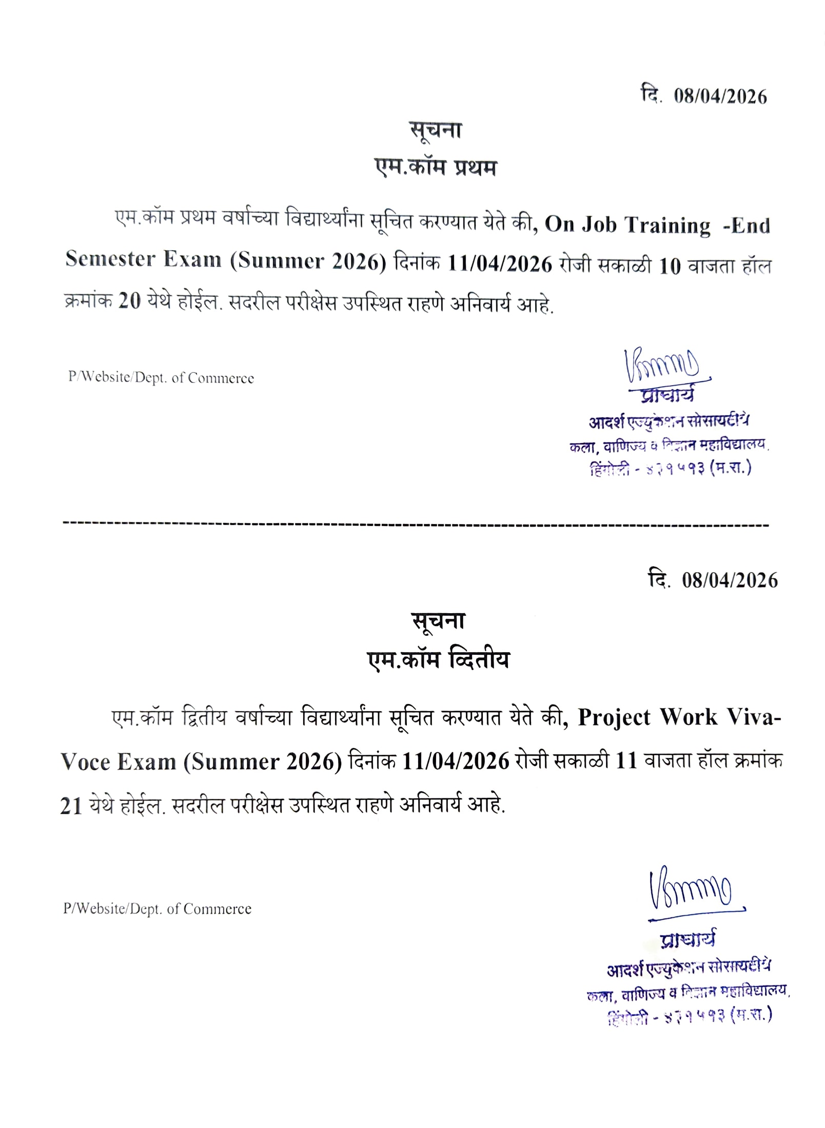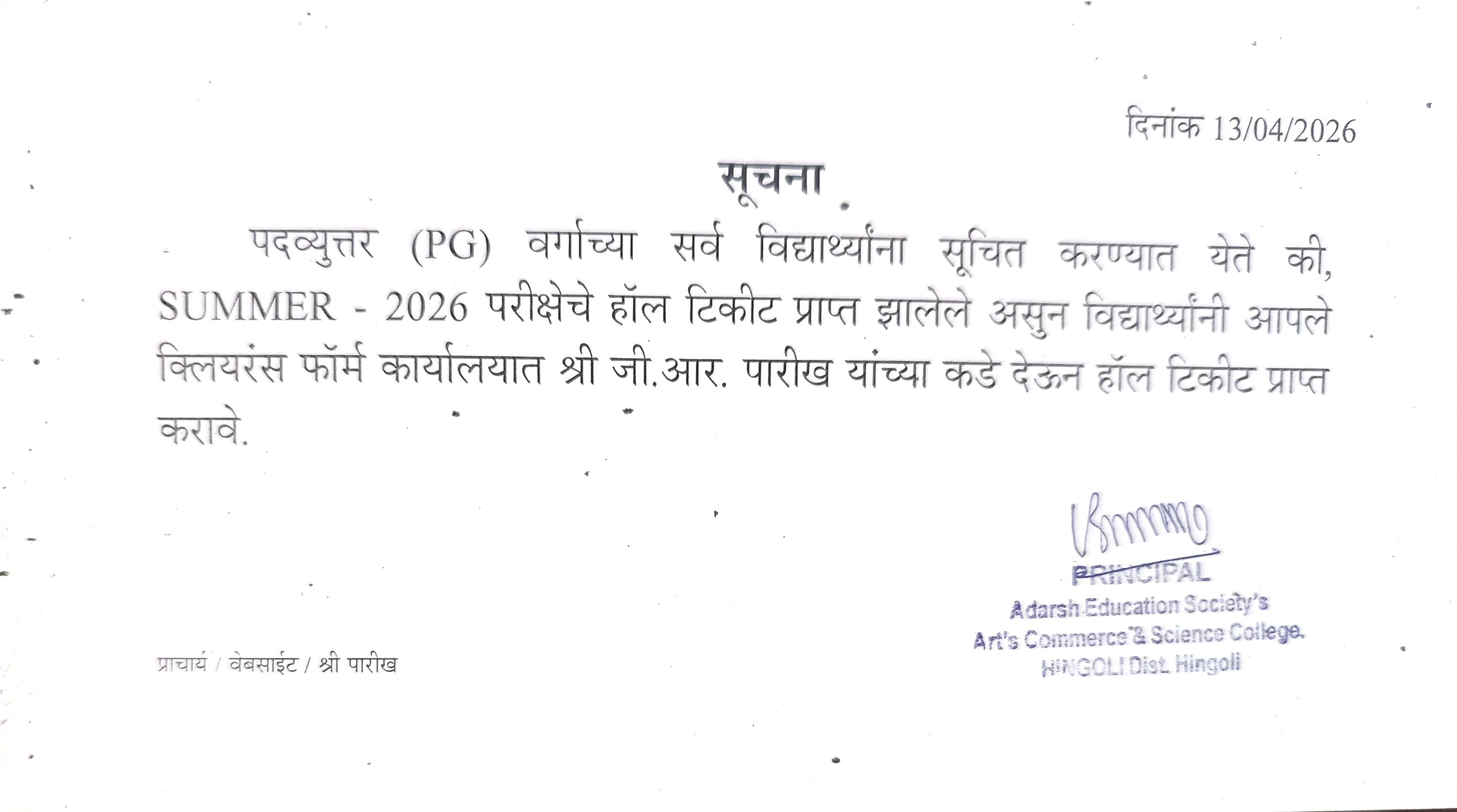 SUM-2026 PG HALLTICKET AVAILABLE IN COLLEGE NOTICE