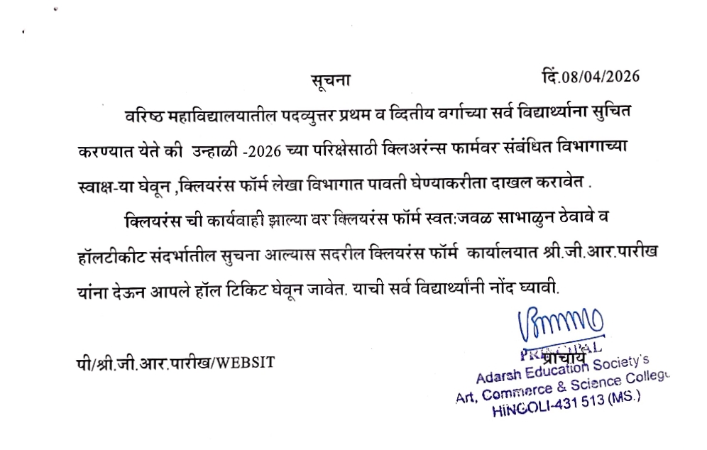 Clearance Notice for Summer-2026 Examination For All PG