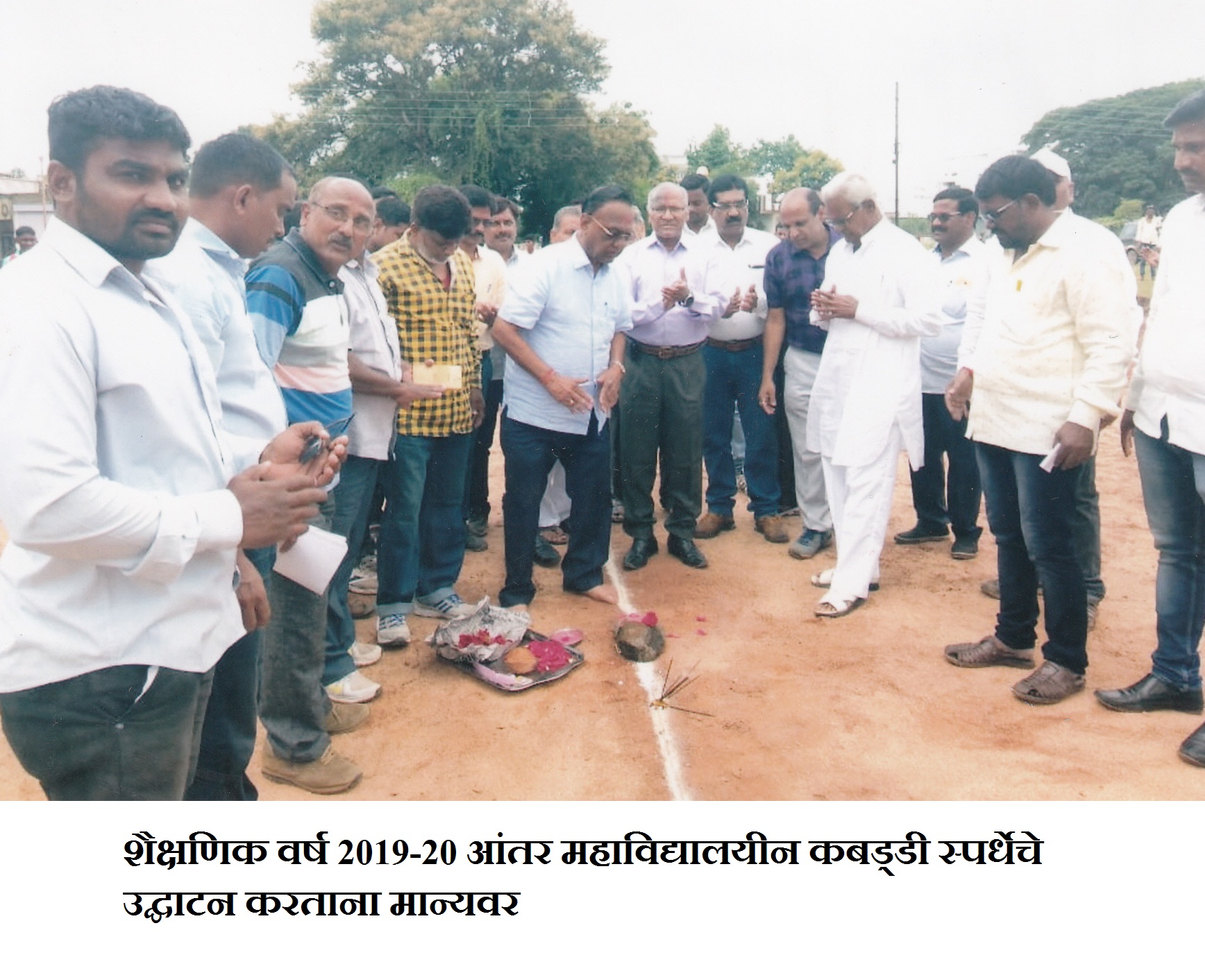 History: The Sports department of this college has come to occupy a distinguished place in the region with its consistently best performance and outstanding best performance and outstanding achievements at the inter-collegiate level as well as university level. It has become significant centre of the sports activity in the area with the imitative taken for the establishment of well furnished grounds available in campus. College teams have great achievement in the team games on well on individual games . games as well as individual games football & Hockey teams have done great job in inter-collegiate level in both Swami Ramanand Teerth Marathwada University as well as in Marathwada University Changed name to Dr. Babasaheb Ambedkar Marathwada University. Kabaddi & Volley ball teams as well performed in tournaments. Our college organizing yearly inter-collegiate Hockey, Football, Kabaddi, Chess, Wresting, Basketball, Badminton & Table Tennis tournament regularly. Our college organizes coaching camps of University teams of Football & Hockey teams. Yearly 10-16 players of our college representing in inter-university west zone tournaments. Sports Facilities: